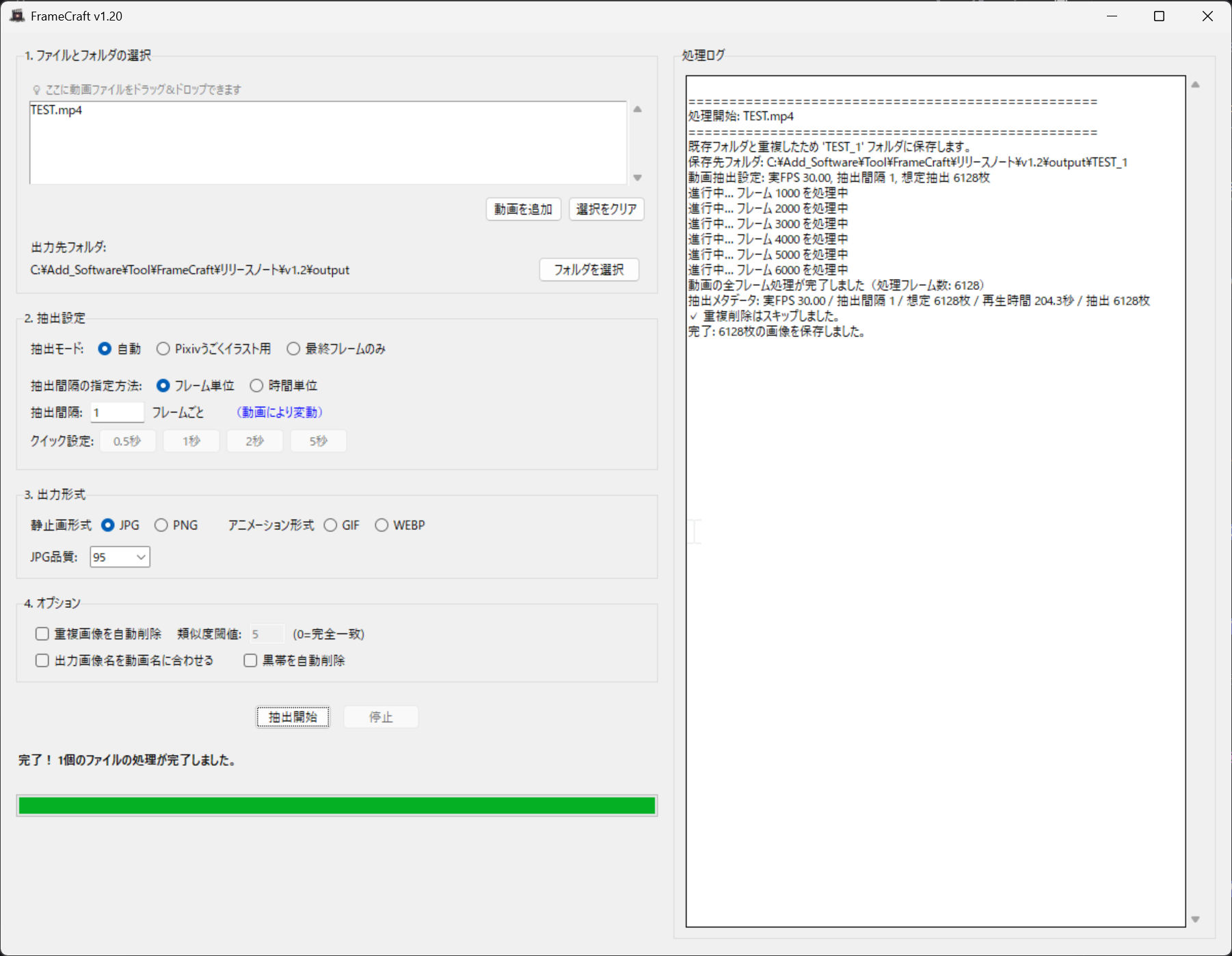 - フレーム抽出精度は動画の品質やエンコードにより変動する場合があります